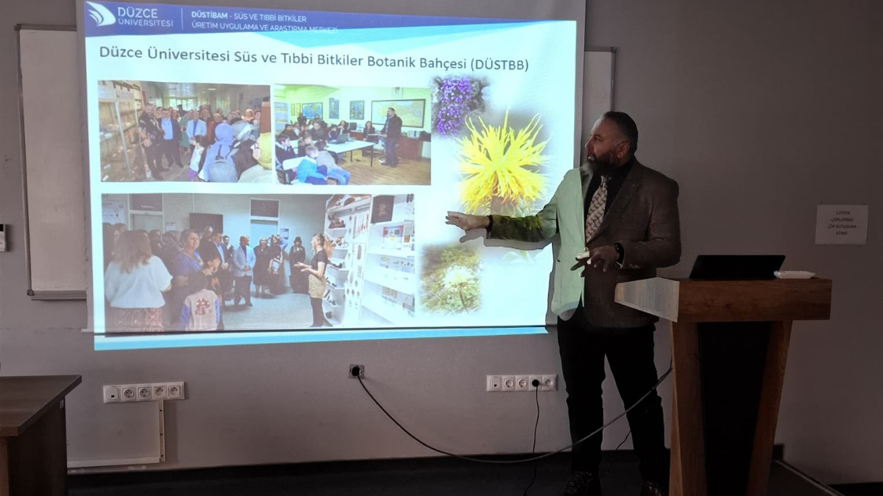 DMHA DÜZCE-Düzce Üniversitesi Orman Fakültesi Öğretim Üyesi, Süs ve Tıbbi Bitkiler Üretim Uygulama ve Araştırma Merkezi (DÜSTİBAM) Müdürü Prof. Dr. Necmi Aksoy’un konuşmacı olarak katılım sağladığı programa; Düzce Üniversitesi Ziraat Fakültesi Dekanı Prof. Dr. Aybike Ayfer Karadağ ile öğretim üyeleri ve öğrenciler yoğun ilgi gösterdi.Botanik bahçelerinin (Hortus Botanicus) tarihsel gelişimiyle ilgili bilgiler vererek sunumuna başlayan Prof. Dr. Necmi Aksoy, biyoçeşitliliğin ex situ (yerinde olmayan) korumasında hayati rol oynadığının altını çizdi. Botanik bahçelerinin, bilimsel araştırma, koruma, sergileme ve eğitim amacıyla belgelenmiş bitki koleksiyonuna sahip olan canlı bitki müzeleri olduğunu da sözlerine ekledi.Botanik bahçelerinin, yerel-bölgesel ve ulusal ölçekte sosyo-ekonomik kalkınma için stratejik bir yaklaşım olduğuna dikkat çeken Prof. Dr. Aksoy, bu merkezlerin gelecek nesillere bırakılabilecek en kıymetli bilimsel miraslardan biri olduğunu vurguladı.Düzce Üniversitesi Süs ve Tıbbi Bitkiler Botanik Bahçesi’nin, Batı Karadeniz Bölgesi’nin en önemli bitki biyolojik çeşitlilik merkezlerinden biri olduğunu dile getiren Prof. Dr. Necmi Aksoy, başta Düzce ili olmak üzere bitki biyolojik çeşitliliğinin korunması üzerine yapılan bilimsel araştırmalara ve eğitim çalışmalarına ev sahipliği yaptığını belirterek katılımcılardan gelen soruları da yanıtladı.