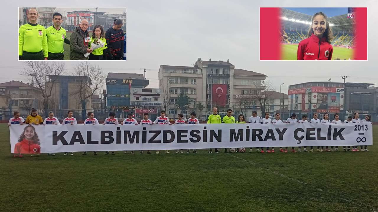 Düzce Kadın Futbol Takımı, geçtiğimiz günlerde vefat eden 13 yaşındaki Miray Çelik’i unutmadı. Takım, oynayacakları maç öncesinde açtıkları pankartla kalpleri yürekleri dağladı.