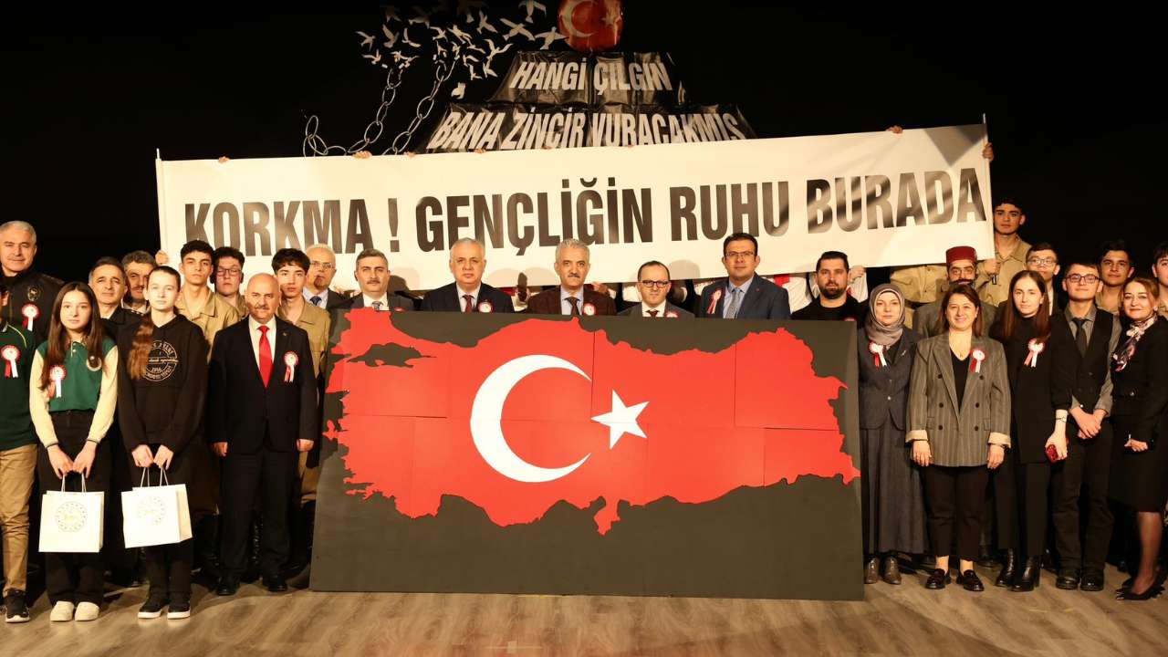 Düzce’de 12 Mart İstiklâl Marşı’nın Kabulü ve Mehmet Akif Ersoy’u Anma Günü dolayısıyla düzenlenen programda öğrencilerin sahnelediği tiyatro gösterisi ve ödül töreni büyük ilgi gördü.