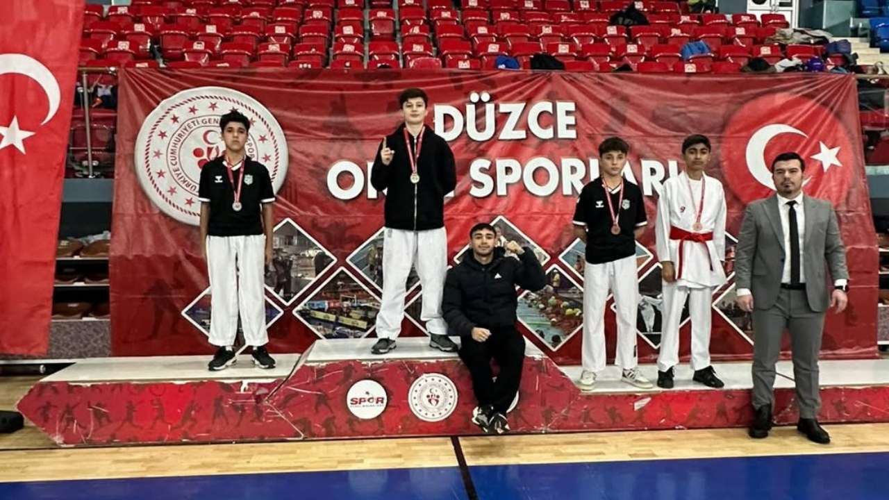 DMHA DÜZCE-Gün boyu devam eden müsabakalarda sporcular, centilmence ve kıyasıya mücadele ederken, karate branşında dereceye giren okul takımları da belli oldu.Karate Genç Kızlar B kategorisinde; Cumhuriyet Anadolu Lisesi, Düzce Spor Lisesi, Kaynaşlı Anadolu Lisesi, Düzce 15 Temmuz Şehitler Anadolu Lisesi, Kaynaşlı Anadolu İmam Hatip Lisesi ve Farabi Anadolu Lisesi derece elde etti. Karate Genç Kızlar A kategorisinde ise Gümüşova Anadolu Lisesi birincilik kürsüsüne çıktı.Karate Genç Erkekler B kategorisinde ise Düzce Arsal Anadolu Lisesi, Düzce Spor Lisesi, Gümüşova Anadolu Lisesi, Cemil Meriç Anadolu Lisesi, Özel Düzce Mimar Sinan Mesleki ve Teknik Anadolu Lisesi ile Cumayeri Çok Programlı Anadolu Lisesi dereceye girerek ödül almaya hak kazandı.Müsabakaların ardından düzenlenen ödül töreninde, başarılı olan okul takımlarına madalya ve kupaları protokol üyeleri tarafından takdim edildi.